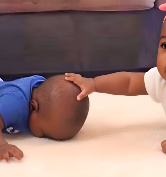 Every time her baby boy tried to crawl, his twin sister slammed his head flat to the floor. The parents...