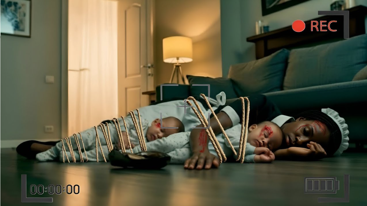 The door was wide open. Inside, Grace lay on the floor just like in the footage — her arms bound loosely with cord.