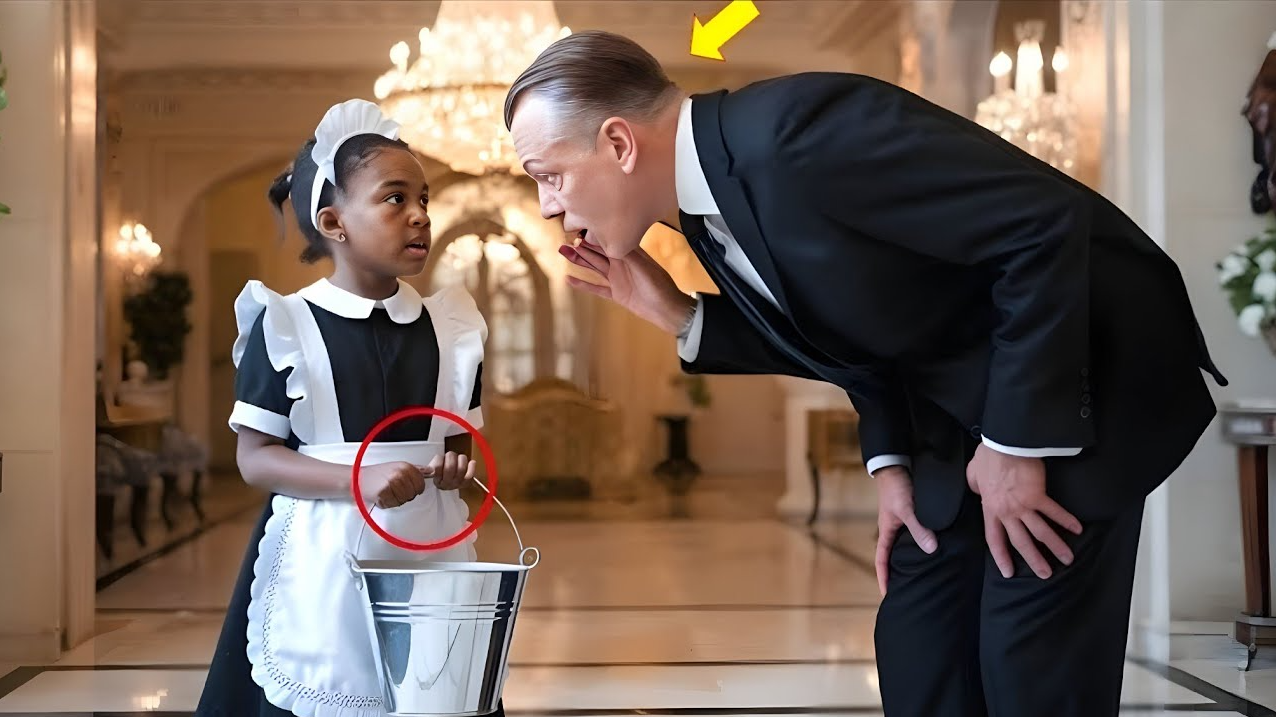 In the middle of all that beauty stood a little black girl no older than nine. Her hair was neatly tied in two small braids, and she wore a perfectly pressed black-and-white maid’s uniform. In her small hands, she clutched the handle of a silver bucket so tightly her knuckles turned pale.