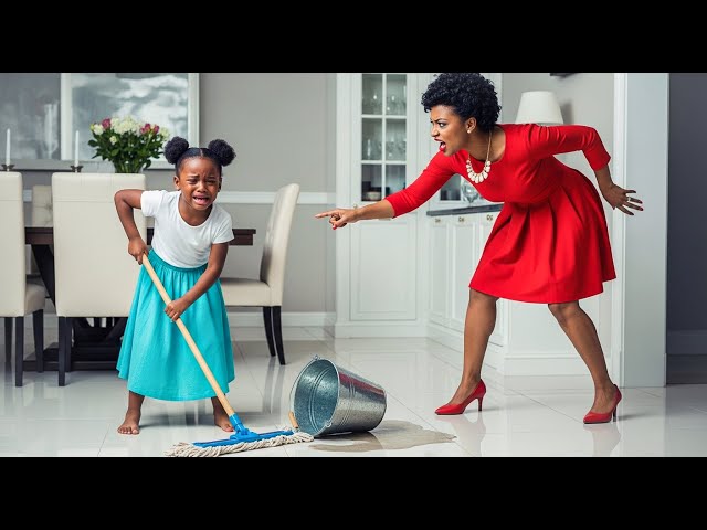 Maria stood in the corner of the kitchen, crying quietly as she held a mop that was almost taller than she was. Her small arms were shaking badly. She was only six years old, and the mop felt heavy in her hands. Veronica, the woman who was supposed to be her new mother, stood over her with hard, angry eyes. “If you don’t clean this floor right now,” Veronica shouted, “I’ll get rid of you the same way I got rid of your useless mother!”